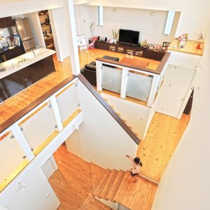2階リビングのスキップフロア住宅。 1階からリビングへつなが…